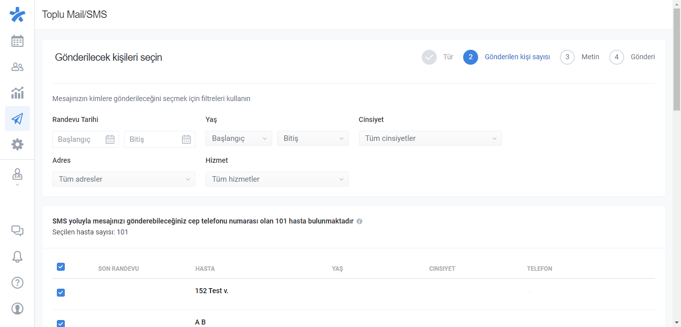 Bu sayfada, hastalarınıza toplu bir şekilde nasıl mail atabileceğinizi, ve de bunun kimlere gideceğini düzenlemeyi öğrenebilirsiniz.