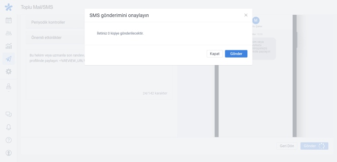 | Bu gönderdiğiniz mesajların içerisindeki linklerin geçerlilik süresi yoktur, yani hasta istediğinde tıklayarak sizin sayfanıza gelebilecektir. |