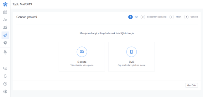 - Buradan Toplu Mail/SMS'i seçin,